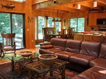 Roomy vacation home in popular Otis Wood Lands offering private lake & beach, club house, fitness center, swimming pool, tennis & playground. Well kept home (new roof, freshly stained, refinished floors) offers a large great room, 5 BR's/2.5 baths, den, sauna, scrn porch and decks. Quiet location with winter views and just steps to a state forest. Near Tanglewood, Jacob's Pillow, BTF and many other Berkshire attractions, yet only 2.5 hrs to NYC, 2 hrs to Boston and 1 hr. to Albany.