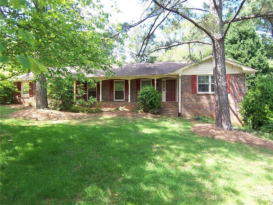 Live in desirable Historic Roswell. Charming brick ranch w/easy access. Beautiful hardwood floors. Plantation shutters in living-dining rm. Updated kitchen w/granite countertops. Ceramic cooktop. Stainless refrigerator & dishwasher. Large laundry room/mud room just off kitchen. Brick fireplace in family room. Built in shelving. Two secondary bedrooms w/bath between. One has built-desk area for computer. Master bedroom has double closets w/built-ins. Terrace level has rec room w/tile floor. Good place for kids to hang out or man cave. Walk to square, Canton St, church. New bathroom (updated). Hardwood floors throughout the house except for two bedrooms. Very private lot. Great neighborhood.