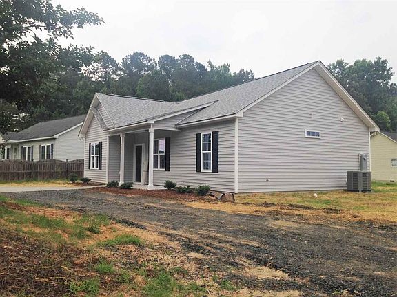Split bedroom layout ranch plan with a covered front porch. Synthetic hardwood floors thru the living, dining, kitchen, & hallway. Granite kitchen c/tops, electric range, microwave, & dishwasher. Cathedral ceiling through the open living rm & kitchen w/serving bar. Sep laundry rm has a pantry closet. The master bedroom has a WIC & full bath w/double vanity. Guest bedrooms have great closets. Concrete driveway. Corner lot. Short walk to downtown Creedmoor shopping, dining, & festivities! $2000 PD C/COSTS!