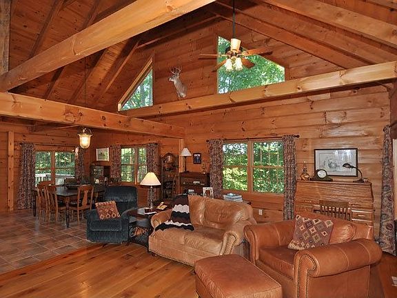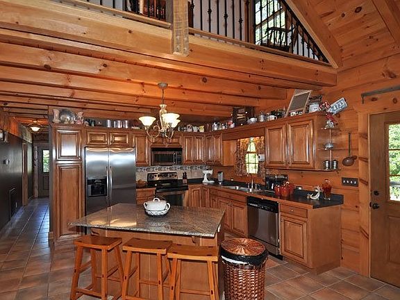 Located in a beautiful wooded setting of nearly six acres, this fantastic log cabin home allows you to feel like you're living in the mountains while being just minutes from downtown Anderson. Custom built in 2001 from a Heritage Log Homes of Sevierville, Tennessee package, this home has a warm, rustic feel but of course includes all the up-to-date amenities to make your life easier. The open great room is the center of the home, and evokes the style of a grand lodge with floor-to-ceiling stone fireplace, exposed beams and vaulted ceiling. The adjacent kitchen features stainless steel appliances, custom cabinetry and a granite topped center island. The master bedroom is located on the main level, while two additional bedrooms and a cozy loft area are located upstairs. The walk-out lower level holds the large rec room, full bath, bonus room and is plumbed for a second kitchen. Outside a spacious deck surrounds the pool, while the detached 40 x 32 workshop is fully equipped with electricity, hot water and HVAC.