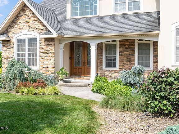 Luxurious 5315 square foot home at 211 Hunters Pass Drive begins through the custom, glass inlaid front doors. The impressive height of the 2 story entry is bolstered by the beautiful balcony, traditional chandelier and a large arch head window. The entry area flows into a formal sitting room, formal dining room and pillars open to the family room and kitchen. The formal sitting room's 9 foot ceilings are trimmed in crown moulding and has an oversized wall window to allow for afternoon sun to shine in on the stately newer cherry hardwood floors that extend almost throughout the entire first floor. Family and friends can dine in comfort and ambiance in the spacious formal dining room. It features custom silk embroidered window treatments, crown moulding trimmed 9 foot ceilings and a gorgeous Italian imported light fixture. The statement area of the home is the open floor plan family room and kitchen that have enormous windows to take in the panoramic mountain views. Note the continuing expansive, newer cherry hardwood floors. The family room has a Tuscan inspired, gas fireplace and ample sitting areas. Newer double doors feature custom, remote controlled Hunter blinds. Glass French doors from the kitchen open to a wonderful flex space currently being used as an office surrounded in windows. The impressive wooden built desk is included! With the separate entrance you can usher in customers and clients in privacy and work from home. Ahhhh, the kitchen - where to begin! Made for the aspiring or accomplished chef. The stunning, arch-top cabinetry is trimmed in granite and upgraded stainless steel appliances. Glass display cabinet doors highlight the work space area that is next to the double door pantry cabinet. An abundance of storage drawers surround a stainless steel refrigerator with Instaview and the convection/microwave oven. Don't miss the mosaic tile cooktop backsplash. Easy clean-up with the oversized , stainless steel, double bowl farm sink with the upgraded faucet. The huge island sits 3 - just imagine cookie baking day with all the counter space! A eating area is lighted by the Italian imported chandelier and exits to the huge Trex deck. The views from the deck are spectacular over the valley hills. Each of the second floor bedrooms are large in size. The MBR Suite features a huge 19'x6.7' walk in closet with custom made dressers, shelving and cabinetry with a pocket door to a spa-like bath. The tile step in shower features jets, raincan and a handheld surrounded in glass with jet tub. The granite topped double sink offers a vanity sitting space. The lower level of the home is a sprawling family room/game space with plush carpet a stone gas fireplace with built in shelving and cabinets. A bonus room could be used as a 5th bedroom with glass French doors, 2 closets and recessed lighting. The 3/4 bath has a step in shower and bidet. Storage is ample throughout the house and includes a 10.2'x7' storage room with custom shelving and a walk through closet under the stairs. Don't miss the tile kitchenette! The lower level walks out to a spacious hardscape covered patio with retaining walls and stairway to the flat yard which could be the perfect home for an in-ground pool! The 3 car garage is ready to finish the charging stations for your EV's! So much to offer with this property!