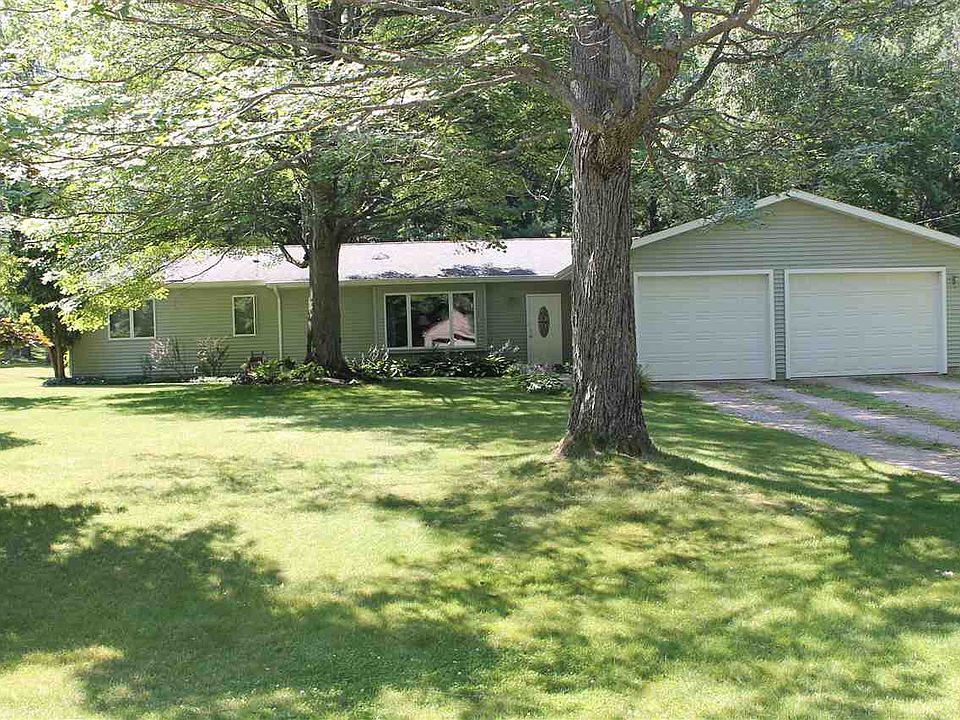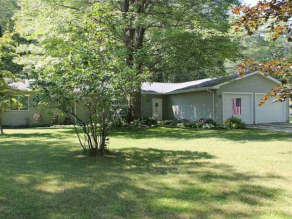 This clean and well maintained home is just what your looking for if you like a wooded setting on a large lot yet close to town. Kitchen and dining room offers a full view of nature throughout the backyard while cooking and eating. 3 bedrooms/ 2 full baths with the master having its own. Don't forget about the 4 car attached garage that leads to the spacious breezeway to remove coats and boots. Bonuses are a large shed, central air and for the hunter, this property adjoins state land to the back!