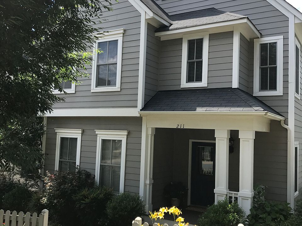 Great, family-friendly neighborhood with easy/quick access to UVa, downtown, 250 bypass, I64. Unfinished, large basement with washer/dryer leads out to lower deck and backyard. Energy-efficient house with granite counters and stainless steel appliances in the kitchen. Dining room, foyer, 1/2 bath, kitchen, and living room are located on main level with a large deck. 2nd floor has 2 full baths and 3 bedrooms. 3rd floor has a full bath, study area, optional 4th bedroom or den. Hardwood floors on 1st and 2nd floors (carpet on 3rd floor with tile in bathroom). Neighborhood has small playground and walking trail. Yard maintenance included. Available July 25.