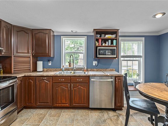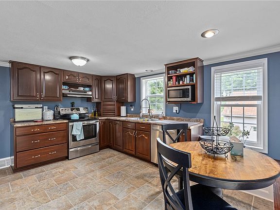 Take a look at this charming corner lot home. Surrounded by tall trees and a flat green yard. Sit on your covered back patio and enjoy your coffee with the chirps of the birds. This home offers a shed, a side carport and a garage. Step inside to a clean, fresh updated kitchen and living space. The three bedrooms, a large bathroom and open basement provides a cozy yet roomy environment for your family.