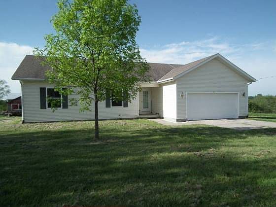 Affordable in-town acreage being sold as is. Property includes 1.37 acres and 13 year old ranch home. Home has 3 bedrooms, 2 baths, over 1,400 finished sq ft, master bedroom has walk-in closet and 3/4 bath, vaulted ceiling in living room and kitchen, and full unfinished basement. Property has several outbuildings including 1 large building with built-in shelving. Close to schools and sports complex.