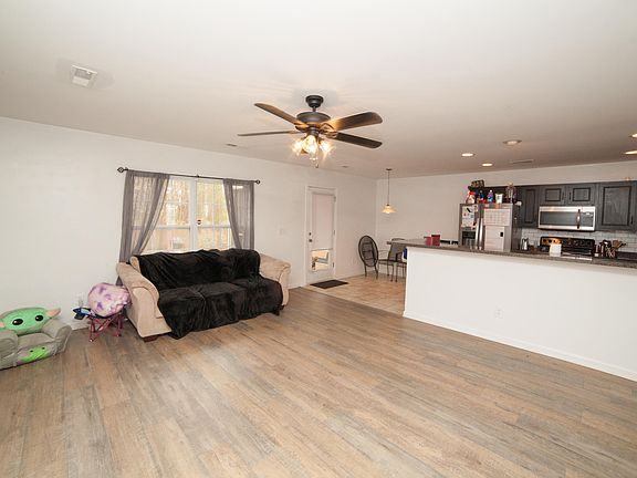 This property backs up to a wooded area, for added privacy. The front porch welcomes you home. As you enter, you'll be greeted by a bright open floor plan, with a great flow for entertaining and everyday living. The eat-in kitchen boasts recessed lighting, ceramic tile flooring, a pantry, and a large breakfast bar. The spacious master bedroom features a vaulted ceiling, a walk-in closet, and an en suite bathroom, with ceramic tile flooring. The laundry room is conveniently located upstairs, with the bedrooms.The large screened-in patio, with ceramic tile flooring, and the backyard area, overlooking a wooded area, will be perfect for grilling out and entertaining.Washer, Dryer, and Refrigerator Convey!
