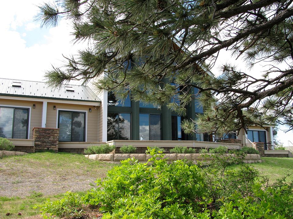 Large family home with mountain view from many rooms. Design incorporates cement board (plus stone and stucco) siding, metal roofing and concrete decks making this one of the most fire proof/resistant homes in the region.