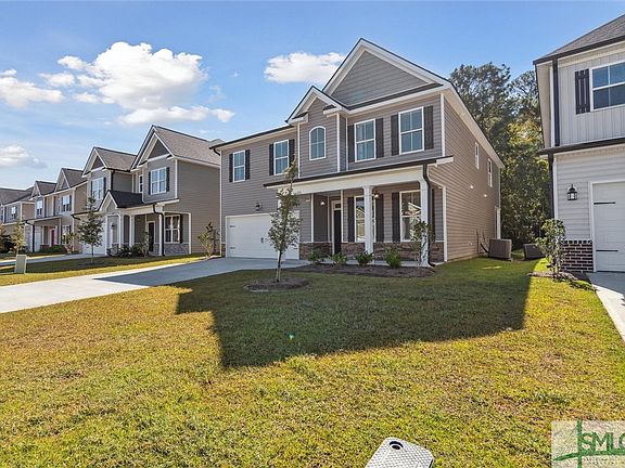 Gorgeous Faircloth Home in Huntington Cove in Chatham County. Four bedrooms upstairs, including two with ensuite baths. Dining rooms feature coffered ceilings and wainscoting. Kitchen has a large center island with granite countertops and ceramic tile backsplash. Modern luxury vinyl plank flooring throughout the downstairs, and carpets in the bedrooms. Electric fireplace in the great room!