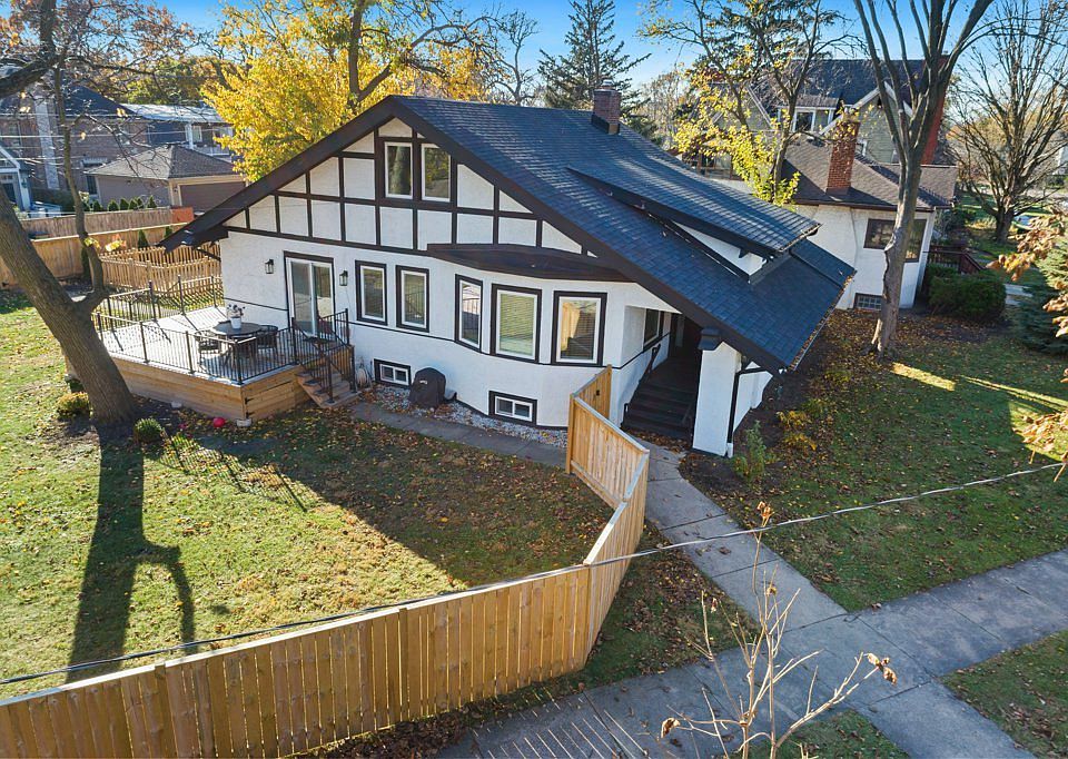 Step into this charming Arts & Crafts style Bungelow, nestled on a nearly 1/3rd acre palatial estate in the heart of Park Ridge. Built in 1910, this historic home boasts original oak columns, beamed ceilings & a wood-burning fireplace in living room to cozy up around on those winter nights. The formal dining room is perfect for enjoying Sunday & holiday meals w/loved ones & includes a large bay window w/seating. The gourmet kitchen is a chef's dream complete w/a large breakfast/buffet island & breakfast room. The family room/game room is perfect for entertaining while the office (or 5th bedroom) offers a quiet space to work from home. The second floor Primary suite has a luxurious Primary bath w/both a soaker tub & Deluxe walk-in shower. Includes additional bedroom or nursery, while there are two additional spacious bedrooms first floor & two more full baths provide plenty of space for the entire family. Relax in the four-season heated sun porch, ideal for curling up w/a good book or enjoying your morning coffee. Outside, the multi-purpose privacy-fenced yard includes new paver brick patio, new deck off kitchen & a fenced dog yard/dog run (pet grooming/shower area in basement). There's plenty of space for an in-ground swimming pool, volleyball court or even your own pickleball court. This home is an outdoor-lover's paradise! Located within walking distance to Uptown Park Ridge & Edison Park dining as well as the Park Ridge Metra station. This home offers the perfect blend of vintage originality, modernization, luxury & convenience. "All new exterior" including a new tear-off roof & new energy-efficient windows throughout. All new or refurbished interior finished w/a fresh coat of Benjamin Moore paint. Basement has been newly water-proofed & drain-tiles installed. New water service to street too! Don't miss your chance to own this "One of a Kind" property!