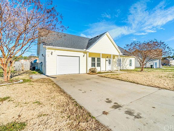 Welcome home to this charming 3-bed, 2-bath ranch in the sought after Laurel Woods Estates. Laurel Woods is an inviting community that is centrally located to VA, the Outer Banks and Elizabeth City. This is ranch style living at its best with a spacious open floorplan and generously sized fully fenced in backyard. This home has been well cared for with updated flooring throughout the living area and hallway. As you enter, the living room seamlessly flows into a designated dining area and kitchen followed by a spacious hall pantry and a dedicated laundry room. All bedrooms are on the main floor creating an inviting and accessible home. The master bedroom has both a walk in closet and walk in shower. Outdoors you will find no shortage of room to relax from the covered front porch to a large extended back patio that boasts a covered back porch and ceiling fan. When you're not busy relaxing at the house, take a walk or bring your golf cart to this golf cart friendly neighborhood and take a short ride around where you may spot one of the neighborhood events or food trucks that frequent in the summertime. There are also 2 playgrounds, miles of walking trails, fish stocked drainage ponds for catch and release and a basketball court to enjoy all within the neighborhood. X flood zone; no flood insurance required.