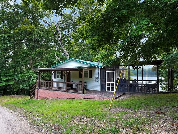 Bring your fishing pole and prepare to make memories at this quaint cottage on Barkley Lake! This 2BR-1BA plan is mostly furnished and waiting for the new owner. Sunroom with awesome view! Covered front deck, spacious screened in porch, step sections to the water and small lot to maintain. Numerous upgrades to include HVAC-metal roof- house plumbing and more. New water well in 2018. Small boat launch just down the road or Blue Creek ramp is within 2 mile drive. Neat seasonal or weekend getaway! Fiber optic internet available.