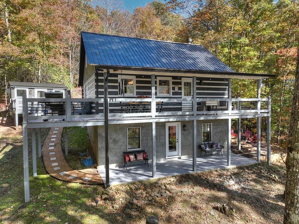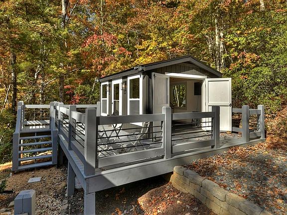 Modern design - rustic refined... Fully furnished - Turnkey mtn charmer boasts the designer's touch w/ one-of-a-kind finishes: beautiful painted chink style wood, stone fp, custom tile showers, modern fixtures, exposed beams, dazzling short-range mtn views, & more. Completely renovated, this dreamer boasts master BR/BA on the main w/ an open living room & kitchen area; the soaring ceil. lead you to the sleeping loft w/ full BA; & the terrace level offers yet another open living space & is complete w/ BR/BA + addt'l bunkroom. Located in the heart of the Aska Adventure Area, this cozy cabin boasts the best of the best, especially when it comes to location, as it's surrounded by hiking/biking trails, a stone's throw from the Toccoa River & Lake Blue Ridge, and is a short mostly paved drive into downtown Blue Ridge. You'll delight in the great outdoors from this spacious lot w/ firepit area, as well as from the large decks overlooking the phenomenal view! And don't forget the REC/game room that is coming soon to the detached mini cabin. Enjoy the ultimate relaxation & delight in easy access to all North Georgia has to offer - recreational activities, entertainment, & more. The prime vacation & rental investment...