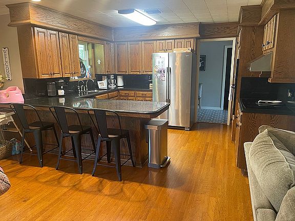 Granite counter tops & hardwood floors in this spacious 3/2 in Delhi. Home boasts an open floor plan, gas log fireplace, large formal dining room, cedar lined closet, utility room with granite counter tops & sink, newly remodeled bathroom, cozy patio for relaxing & large shed with electricity on a slab.