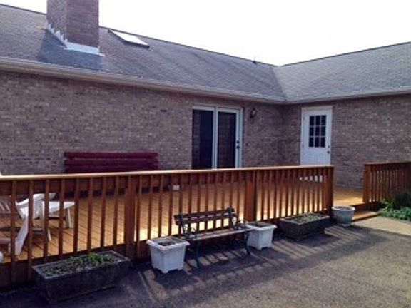 Tucked Away! Quality brick ranch home. Seven acres of beautifully laying property. Modern open floor plan. Cathedral ceiling in living room with skylight and fireplace. Eat in kitchen with breakfast bar and skylight. Patio door of living room leads to back deck. 1 car integral garage, 2 car attached, and 2 car detached grg with electric. Master Bedroom with master bath His/Her walk in closets. Exterior wood burner alternative to electric heating bills. Seller to have driveway sealed. Covered front porch