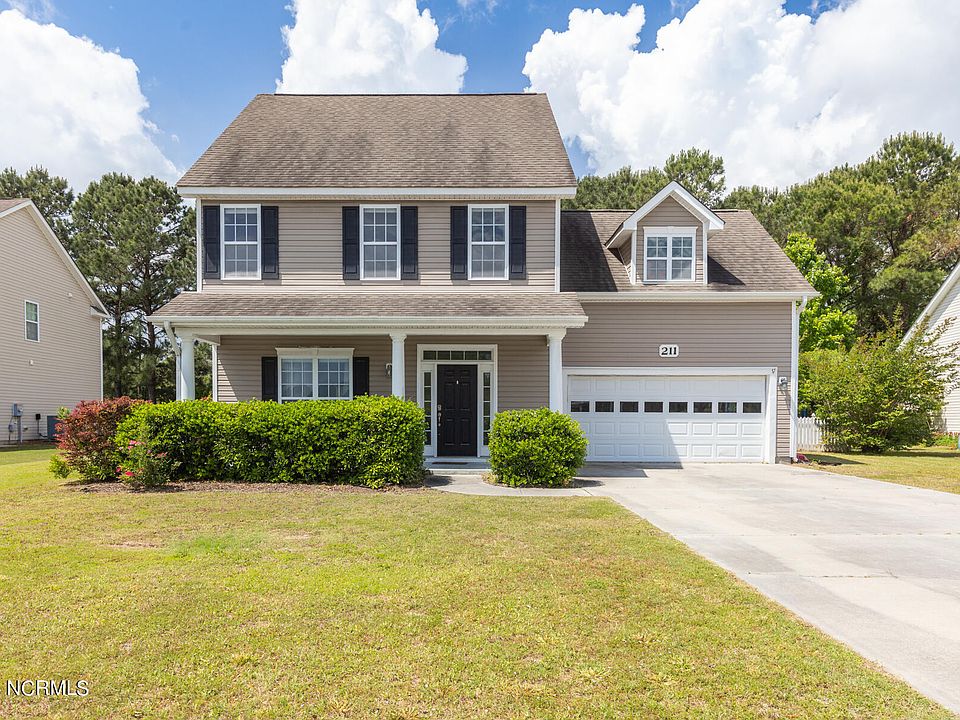 Experience the epitome of luxury living just moments from the beach! As soon as you arrive you'll notice the beauty of this home which showcases elegant pillars that grace the front patio, overlooking the front yard. As you step through the front door, you'll be greeted by a breathtaking entryway adorned with stunning wood flooring. The foyer provides views into the inviting family room, dining nook, and kitchen. The kitchen is a perfect blend of elegance and functionality, featuring stainless steel appliances, granite countertops, pristine cabinetry, and gorgeous tile backsplash that enhances the overall aesthetic. With ample cabinet and countertop space, the large center island and the spacious kitchen nook offer both practicality and style, with a view of the backyard. The family room is adorned with a classic fireplace, creating the perfect ambiance for cozy winter evenings. As you ascend the stairs, you'll be greeted by the Master Bedroom, two generously sized secondary bedrooms, and a sprawling bonus room. Take note of the BRAND NEW carpet just installed on May 22nd! For the ultimate in comfort and luxury, retreat to the Primary Bedroom suite. Tucked away for privacy, the Primary Bedroom boasts a spa-like Bathroom with a dual vanity, a luxurious soaking tub, and a walk-in shower. If you enjoy outdoor living, you'll absolutely adore the large backyard! This pristine home is conveniently situated halfway between Jacksonville and Wilmington, in the highly sought-after subdivision, The Villages at Turtle Creek. Experience a wide range of exceptional amenities right within your neighborhood. From a community pool and fitness center to a playground, clubhouse, and sidewalks, there's no need to venture elsewhere for fantastic recreational options. Don't miss this incredible opportunity to own a piece of everyday luxury!