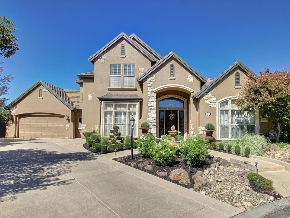 Elegant French Chateau nested in a Cul-De-Sac in Hillsborough gated community. Private resort style backyard that backs up to the greenbelt with Lap pool, outdoor kitchen and pergola that was completely built in 2015 with Firemagic BBQ and cooktop, outdoor large built-in bar, fridge, covered pergola with fans and mounted patio heaters, beautiful outdoor fireplace with stone and well maintained garden. This custom chateau was built by Paul Hills Construction. The house features Chef kitchen that was completely remodeled in 2019 with Subzero refrigerator, 48' freestanding Viking gas Range with double ovens, Miele dishwasher, beautiful Granite countertops, custom cabinets and wine fridge. On the Main floor you will enjoy Master bedroom suite, office, powder bath, dining room, family room , kitchen and laundry room. upstairs there are 3 bedrooms and one full bathroom. Timeless finishes throughout the house include 22 foot high ceilings, grand entrance with high ceiling, nice decorative metal railing and wet bar. Tankless water heater and instant hot water. HVAC was replaced in 2017. Epoxy garage floor and garage cabinets were installed in 2019. Huge attic storage over the garage. Top rated Eureka Union School District and Granite Bay High School. Cost saving Roseville utilities.