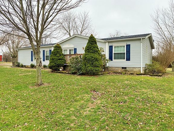 This wonderful home is situated on a lovely 1 acre lot in rural Trimble Co. The home features 3 BR, 2 Baths including a Master Bedroom Suite with adjoining bath. There is a spacious living room with vaulted ceiling, a huge eat-in kitchen as well as a separate dining area and much more. Outside you will find a covered rear deck, above ground pool and a 28' X 48' pole bldg with concrete floors & electric. This one is a must see for your home shopping list!! Call today!!