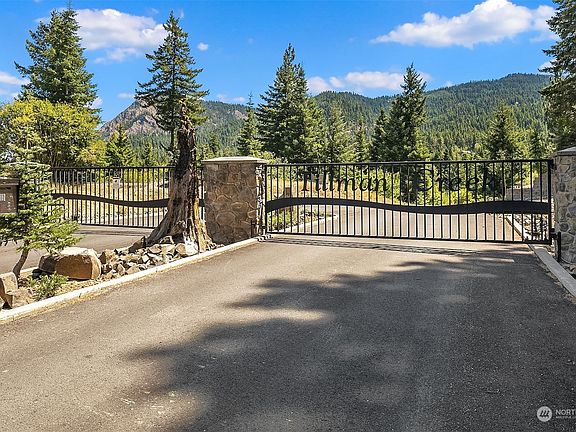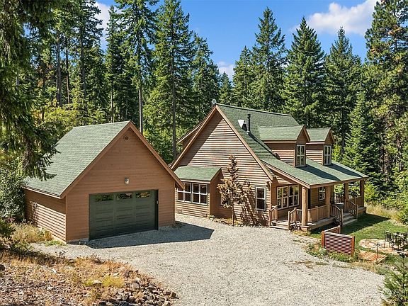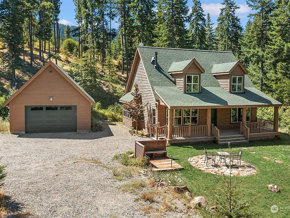 Scenic Secluded Sanctuary ~ Privately tucked away on 3 wooded acres in one of South Cle Elum's most sought-after gated communities, Tillman Creek, this timeless custom built 2007 timber-frame chalet cabin is a nature lovers mountainside paradise! Sweeping covered front porch with hand-peeled log columns leads to stunning great room with soaring ceilings, free-standing gas fireplace and grand open rail log staircase & balcony. Gorgeous T&G pine paneling, fir millwork, hardwood floors & oversized windows with abundant natural light & mountain views throughout. Kitchen with island breakfast bar. Family room loft with built-ins. Luxurious primary suite with 5-piece bath. Huge detached garage with loft storage. Endless outdoor activities abound!