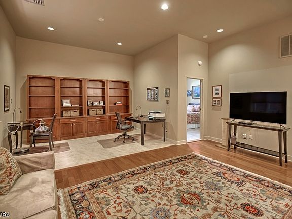 First floor living in this renovated spacious Condo. Over 1000 square feet, largest one bedroom unit in the building. This fabulous layout has 11-foot ceilings, all white newer kitchen with granite, stainless appliance and a pantry unit. The sumptuous bath features a large walk-in shower, and frameless shower glass door. There is also a formal powder room in the foyer area. The interior woodwork features an architectural column connected to built-in shelves; the study / office area has a wall of custom cabinets and shelving. The bedroom features a wall of closets offering lots of storage. Brand new HVAC system and a stackable washer dryer to add to the modern comforts of the home. The buildings unique drive through turn around lets you pull right up to your door to load or unload your car before using the off-street parking. The basement has a large private storage area. Once a Desoto car dealership which adds a unique character to the property, now transformed into 14 condos. Just one block from the NYC Trainline, fine dining options, and a newly renovated park and trail system with a pond, the condos offer a prime location for both leisure and commuting. Fabulous private and public golf clubs are nearby, also town tennis courts, parks, trail systems and stocked trout stream. Easy access to major arteries, shopping, and Newark airport. Overall, Gladstone House Condos seem to provide a comfortable and convenient lifestyle with a touch of elegance and historical charm.