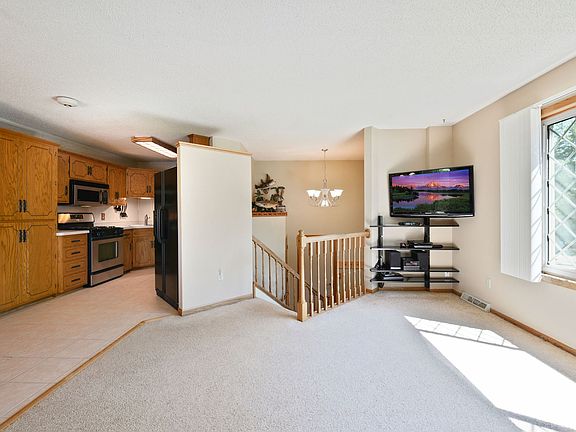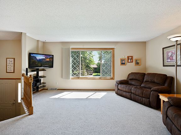 Wonderfully kept home in a private neighborhood! Unique layout with an open feeling! Large windows and a vinyl sliding door flood the main level with natural light! The kitchen and dining room feature ceramic tile flooring. The basement was beautifully redone in true Minnesota fashion using knotty pine! This gives you the up north cabin feeling right in your own home! Because of the great southern exposure, you can enjoy the sunrise with a cup of coffee on maintenance free deck! In the evening, you can relax the night away on the private master balcony! When company comes over, you have plenty of space to entertain on the huge stamped, wrap around, concrete patio or roasting marshmallows over a fire in the professionally finished pit! There is extra room for toys along the side of the garage and in the heavy duty shed in the back yard. This one is a must see!