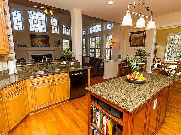Water views galore from this gorgeous open concept all brick transitional home in low-maintenance neighborhood of River Road West. The architectural windows flood the home with light and provide beautiful water and woodland views! Huge gourmet kitchen with upgraded glazed cabinets, oversized center island, wet bar, wine rack, granite, backsplash, and stainless appliances, open to the sunroom and family room. First floor luxury owner's suite with water views, huge walk-in closet, French doors to