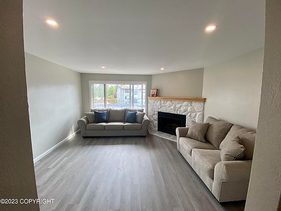 Adorable updated topr level condo with washer/dryer, designated carport across from entrance and a separate/private storage space. Pet friendly with grass behind the building and across the street from park. Close to JBER, downtown Anchorage, & the Glenn Hwy. Dues include heat! Full remodel and ready for new owner!