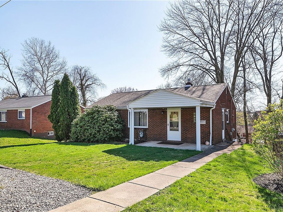 This Brick ranch-style home is situated in the desirable heart of Monroeville. It features a welcoming covered front porch, and grassy, level front yard, a newer front door and three bedrooms, two full bathrooms. New roof in 2022, newer AC and Microwave. The efficient kitchen has recently been upgraded with new cabinets and countertops and floors, freshly painted interior, and is filled with natural light. The home also includes a spacious, recently updated game room with access to the backyard, as well as one car garage and two off-street parking spaces off of the shared driveway. Its convenient location to the Mall, shops, hospitals, and eateries, as well as easy access to the Turnpike and Parkway.