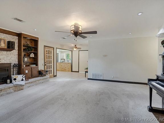 This inviting 3 Bed/3 bath with bonus room has a cozy living area, brick fireplace with built-in shelving that adds character and functionality.
