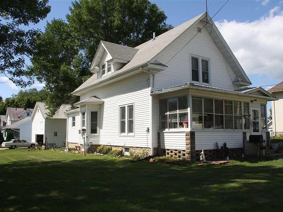 Spacious but affordable, this turn-of-the-century one and half story features a main floor bedroom and half bath, eat-in kitchen, formal dining room and an open living room with original woodwork. Upstairs consists of two large bedrooms, each with walk-in closets, and a full bath with claw-foot tub and walk-in closet. In addition to an enclosed front porch, this corner-lot property also features an original 1900 barn that was converted into a 2-stall garage with overhead door and full 2nd-level storage.
