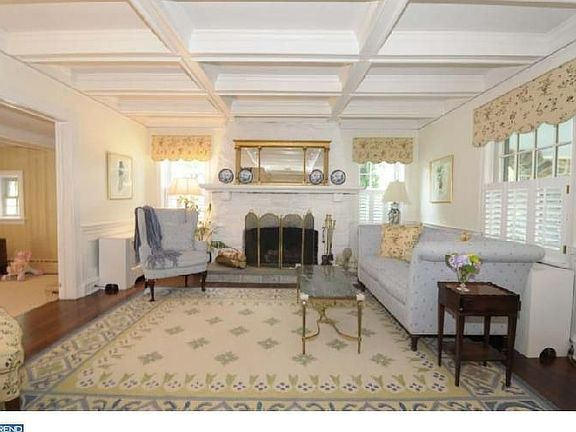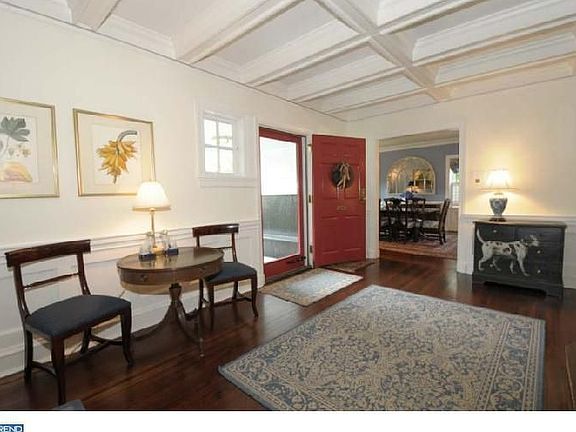 Picture-perfect 4-5 bedrooms/2.5 bath ~~~walk to Wayne~~~ home has been lovingly and meticulously renovated and ready to move in. Picturesque front gate welcomes you to this charming property. Brick paver pathway leads to covered front porch w/built-in bench. Open entry area into Living room w/ magnificent coffered ceiling, stone fireplace, deep windowsills, wainscoting, hardwood floors and Plantation shutters; Dining Room w/wainscoting, hardwood floors and Plantation shutters as well. Lg. Family Room off Gourmet Kitchen renovated w/custom handmade cabinetry, farmhouse sink, Wolf range, stainless prep sink, subway tile, granite counters, abundant lighting and more! Beautifully updated 1st Fl PowderRoom. 4 to 5 bedrooms on 2nd fl plus sleeping porch. Lower Level recently renovated includes media room, bright laundry and craft area. Great storage in Walk-up Attic and Lower Level. 2-car detached Garage, wonderful level fenced backyard and flagstone patio. Just about everything has been done~~~A gem in Wayne!