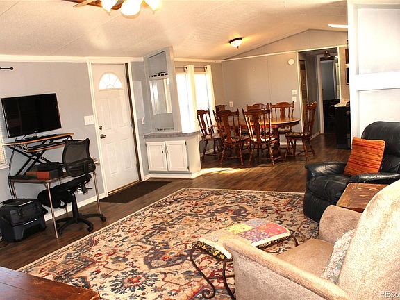 Enjoy mountain living in Colorado's highest town! This home is ready for the perfect buyer who wants to take advantage of this affordable opportunity! This single wide home features a large living area with a wood burning fireplace for those cold winter nights! The kitchen has been updated and has new stainless steel appliances, countertops and has a separate dining area for a large kitchen table. The primary bedroom has a 5 piece master bath with separate toilet and shower area. There is also another large bedroom, 3/4 bathroom and separate laundry area as well! Newer paint and luxury vinyl throughout, plus there is a storage shed outside! Lot lease is $650 per month.