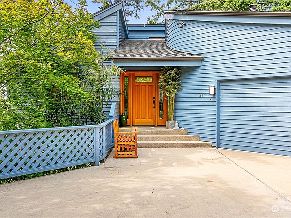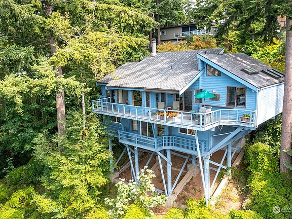 This architect-designed South Hill home offers bright & exceptional living spaces w/ stunning views of Bellingham Bay! Excellent floor plan includes primary suite & all main living areas on the main level. Lower level includes family room, 2 bedrms, bthrm & bonus room for work, hobby or storage space. Enjoy views from both levels! Kitchen updated in 2020 along w/ other updates around the house. Furnace & water heater new in 2020. Home boasts many skylights, fireplace, 2 decks, hardwood floors, vaulted ceilings & garage w/ .5 bthrm. Spacious, partially covered deck is perfect for enjoying amazing sunsets. Low maintenance yard space. There's parking space for a small RV or use it for extra parking. Located on a very quiet & private street!
