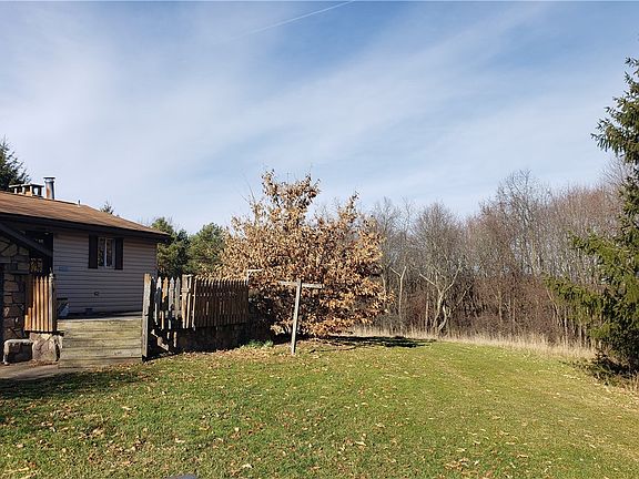 Hard to find location with breathtaking views on all sides! Private and wooded with small stream running through it this home offers more than meets the eye! Open living area with vaulted ceiling, spacious country kitchen, bedroom and full bath complete the first floor which steps out to both a large covered porch in the front and deck in the back to have your morning coffee! Basement is completely finished with two bedrooms, large family room, full kitchen and bath and laundry/utility room. With separate entrance, this could be used as separate living space.... There's also a nice sized fruit cellar for those of you who like to garden....Large garage/barn with second floor loft area offers lots of storage space for vehicles and lawn equipment. Add your own finishing touches to make this a showplace!