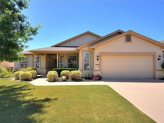Welcome home to 211 Mustang Island Trail a Pemberton/Cumberland Hall. This spacious home planned for gracious living will a accommodate your style from casual to elegant. The 3-bedroom plus study, in-law plan provides ample space for multiple offices, craft room, or music room with a large gathering area. The Texas-sized elevated patio is great for entertaining or just relaxing overlooking the panoramic view and enjoying the gentle breezes. With easy access to Cowan Creek fitness center and golf course, this home is ideal for enjoying the Sun City lifestyle. New roof in 2020. Pictures are from 2020 prior to the current owner moving in. No changes have been made in terms of painting, flooring, or light fixtures.