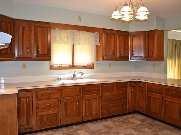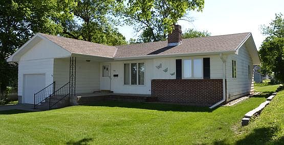 Attractive, well-arranged, 2 bedroom ranch style home. Open floor plan from the great kitchen into the dining room and living room. Big master bedroom and good-sized second bedroom. New ceramic tile shower in the main bathroom. Main floor also has the laundry room/half bath near the entrance to the attached single-car garage and stairs to the basement. The full-unfinished basement has a huge family room area, kitchen area, 3/4 bath, storeroom and big storm shelter - canning storage room. The home is located on the edge of town, near the golf course, with a great view of farmland to the West of town. Big lot with plenty of room for a garden and construction of additional garage/shop space if needed