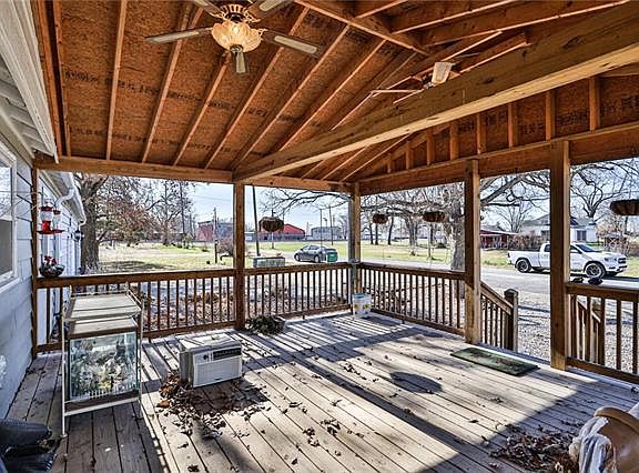 Adorable Ranch home sitting on almost an acre lot. Hang out on the oversized covered front porch and watch the sunsets. Newer 30 x 50 Outbuilding w/ concrete floor & power. Small area fenced in the back of the house for dogs. Established trees and plenty of parking options (used to be a church). RV hook ups next to the building. The house has been recently updated and really just needs paint if you didn't like the interior colors. Full basement. Mudroom between garage and house has access to backyard also.