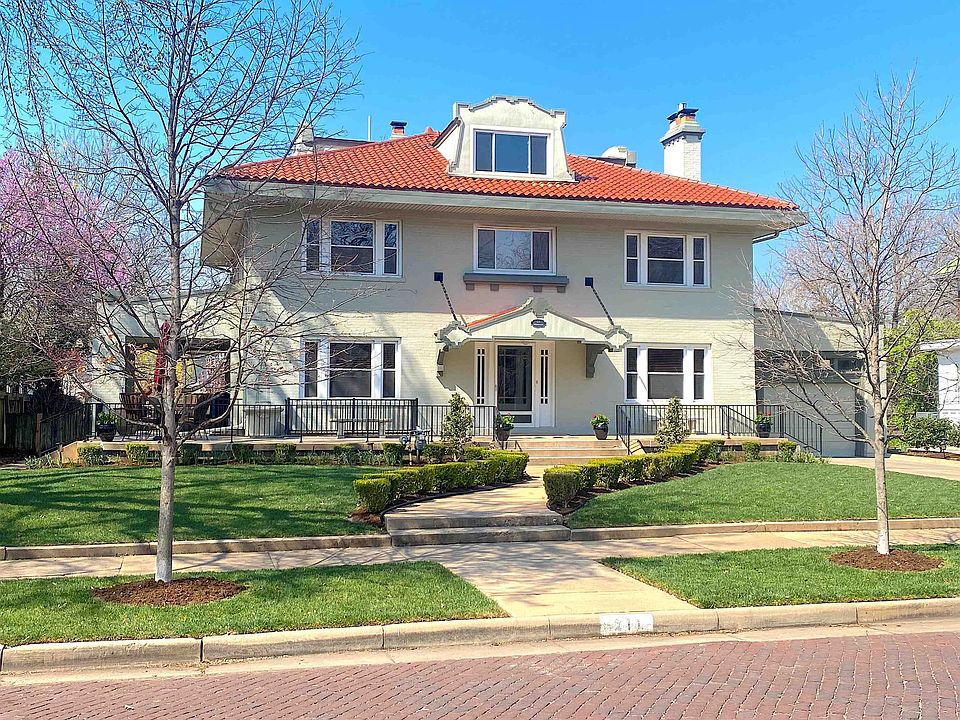 Welcome to an exquisite residence nestled in the heart of College Hill, where timeless charm meets modern elegance. This historically traditional home stands as a testament to architectural craftsmanship, exhibiting unique accents and meticulous landscaping that serve to set it apart. Enter through a welcoming foyer to be greeted by the grandeur of spacious living areas, including a light-filled living room and formal dining room. The main floor exudes refined sophistication with large room openings providing extended lines of sight. A sun-drenched room to the west offers a versatile space for dreaming up your next big idea, strumming a tune, or peacefully sipping your morning coffee. The kitchen has been tastefully updated with stainless steel appliances, granite countertops, and tile flooring, marrying style with functionality seamlessly. Flowing effortlessly throughout the home, the layout combines with a central staircase to create an atmosphere of grandeur and grace. High ceilings, abundant windows, and multiple custom built-ins add to the allure, while modern conveniences such as insulated windows, zoned HVAC, and updated plumbing and electrical systems ensure comfort and efficiency. Comprehensive sealing and weatherproofing combine with the high thermal mass of beautiful masonry to yield significant energy savings. Upstairs, the second floor offers respite with five bedrooms and two bathrooms. The primary bedroom suite features a quaint connecting passage which leads to a space conducive to a nursery or private retreat. Convenience is key with a second-floor laundry, making everyday tasks a breeze. The basement presents the flexibility of numerous possibilities, from a family room to a workout space, or sixth bedroom, complemented by a bathroom, pantry or wine cellar, and ample storage. Outside, the all-brick exterior and traditional clay tile roof exude curb appeal, with multiple porches and patios offering inviting spaces for outdoor entertaining and relaxation. Garages include a single attached and a standalone 3-car structure, providing ample parking and storage options. Situated in Wichita’s esteemed College Hill neighborhood, this 1935 vintage home embodies timeless elegance and charm. Don't miss the opportunity to make it yours.
