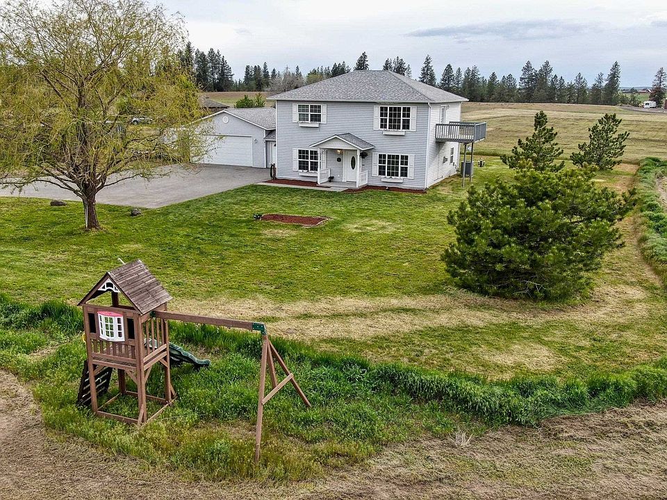 MOTIVATED SELLER! MOVING OUT OF STATE! Lovely 2 story home w/an att gar on 9.85 acres very close to Fairchild AF Base, Airway Heights, Amazon, Walmart & the Spokane Airport! 3 bedrms are all together on the 2nd level along w/2 baths & laundry room for total convenience. The main flr offers a family rm, living rm w/a propane FP, large dining rm w/french doors leading to a huge partial covered patio, a light & bright kitchen w/views to the backyard & pasture. You will love the large utility/mud room between the kitchen & garage that is perfect for storage & a great area for your pets! Garage is insulated & heated. This would be a fantastic horse set up with room for arenas, round pen, barn, and a huge shop on flat useable land! Enjoy the morning sun on the front porch and fantastic sunsets on the huge back patio. You even have your own private deck off the primary bedroom on the 2nd floor with wonderful views! All of this so close to Spokane or Medical Lake! No HOA. Turn key ready and hard to find property!