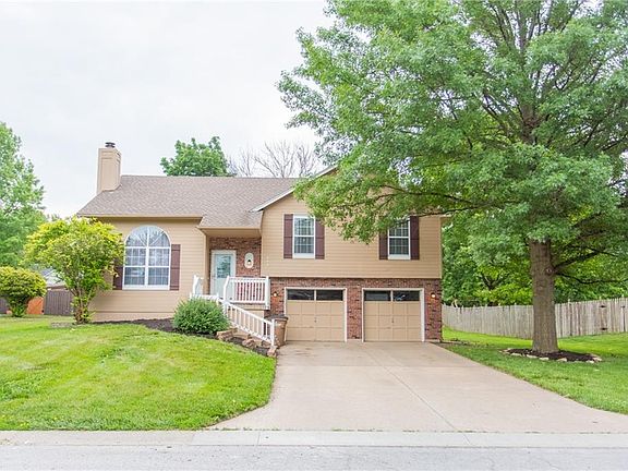 Beautifully treed backyard, well maintained, 3 bed, 2 full bath, (4th non conforming bedroom/hobby room, etc) walk out finished lower level front to back split featuring tons of upgrades. New granite countertops May 2023, new subway tile backsplash May 2023, new ceramic sink and faucet May 2023 including new garbage disposal, new kitchen paint May 2023, new mini blinds May 2023, new shutters May 2023, New landscaping mulch and resetting of landscaping bricks May 2023. New stove and dishwasher August 2022, kitchen cabinets painted and new hardware August 2022, new wrought iron spindles August 2022, new LVP throughout August 2022, new interior paint August 2022 and May 2023, new stair carpet August 2022 and much more!! Conveniently located near local grocery shopping, many restaurants and the heart of Raymore. Walking distance to elementary school and Fire Department. Minutes from Lees Summit and highway access. Come check out this amazing, newly refreshed and updated Raymore beauty for under 300k!