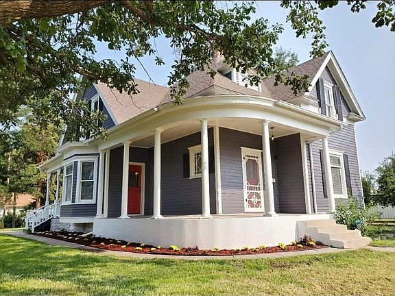 This Victorian home has been beautifully restored with original woodwork and refinished wood floors. The exterior has been painted and the red doors and trim accentuate the architectural details. The kitchen has been updated with new period style cabinets with glass doors in some and the height rising all the way to the 9'6" ceiling. The stainless steel range and dishwasher are nestled in the new island/eating bar and look as if they have always been there. The adjacent butler's pantry has additional storage and houses the refrigerator. The house has its own well that is connected to the 8-zone underground sprinkler system, which has a Rachio Smart Sprinkler Control that can be adjusted from any Smart phone. The furnace and air conditioning are nearly new and can also be adjusted from a Smart phone. The entire house has been completely rewired. There is a new covered redwood deck on the west side of the house and the basement has an exterior access along the driveway.