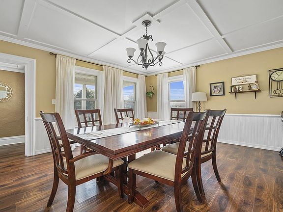 Situated on a 2/3 acre lot, this newly remodeled home is absolutely STUNNING!! This beautiful home consists of 4 bedrooms, 2 bathrooms, and nearly 2100 square feet of living space. With this home being almost entirely remodeled there are many updates! On the first floor is a fully updated kitchen including new cabinets, countertops, appliances, light fixtures, and flooring. The formal dining room consists of new high quality vinyl flooring and new lighting. Both the living room and formal dining room boast a beautiful coffered ceiling. The convenient first floor laundry room features updated flooring and sink. This home features updated electrical and plumbing throughout. New doors and drywall were added within the last year throughout most of the home. Other updates include a new tankless water heater, new flat roof above the kitchen 2020, and a newer shingle roof. On the exterior of the home, you will notice the aesthetically appealing brick paver driveway and sidewalk, as well as a beautiful large yard consisting of many mature trees. The backyard consists of 3 well kept storage sheds and plenty of space for activities. The country setting of this location is perfect for viewing both sunrises and sunsets. To top it off, this small town is located near Shabbona State Park, Indian Oaks golf course, and features many reliable high speed internet options to choose from.