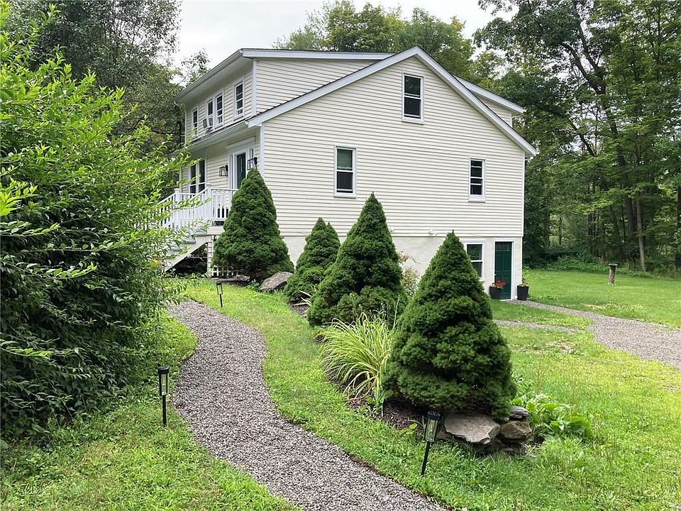 Located in the Town of Washington, a few minutes to the Village of Millbrook, this recently renovated farmhouse is situated on one of the most picturesque country roads in the area and is surrounded by a diverse array of mature trees. Spanning approximately 2 acres, the property offers ample space for outdoor activities and a sense of privacy. Step inside to find an attractively updated interior, blending modern amenities with classic farmhouse touches. The main floor features a bright and expansive +/- 18x40 feet living/dining room, filled with natural light and centered around a beautiful wood burning marble fireplace. Sliding doors open to a southern-facing deck, offering serene views of the garden for relaxation or outdoor dining. The fully renovated kitchen includes sleek quartz countertops and a stylish tile backsplash. A convenient half bath is nearby. Upstairs, a spacious primary ensuite bedroom offers comfort and privacy, alongside a second ensuite bedroom ideal for guests or family members. The lower level adds further functionality with a good-sized, partially finished basement which includes a laundry, utility room, and a full bath and an additional flexible space for a home office or family room. A potential mud/boot room with outside access to the parking area enhances practicality and organization. Outdoors, the property features an inviting outdoor dining area shaded by a beautiful Japanese maple tree, perfect for enjoying meals al fresco in a picturesque setting. Nearby, a fire pit is all set up for the chillier nights or just to relax. Whether you seek a tranquil home or a place to entertain, full time resident or weekends only, this property delivers. Minutes to Amenia, very close to trains.