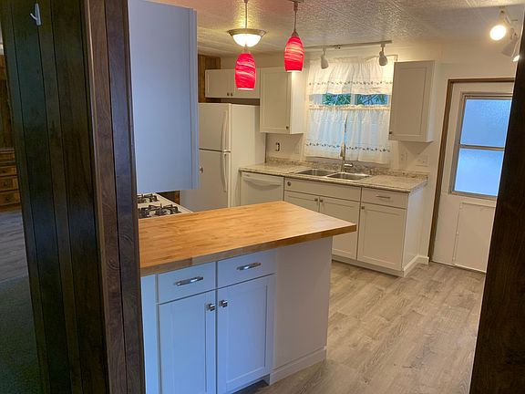 Recently completed remodel of this 3 bedroom 2 bath home in quiet west side location near native plant garden. Almost everything is new (carpeting and flooring, windows, doors, paint, lighting and cabinets). Spacious kitchen with new butcher block peninsula has gas range, dishwasher, garbage disposal and refrigerator with ice maker. Laundry area with washer/dryer included. Beautifully landscaped, lawn service and water are included in rent. Wrap-around porch. Call eight-seven- eight-2625 (area code 760) for more details. Owner pays for water. Tenant pays for electricity, propane, phone and internet.