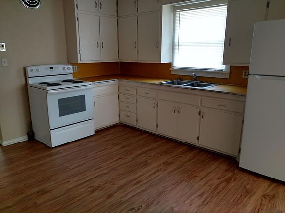 Central heat and air, vinyl flooring in kitchen, dining room and bathroom, large living room, attached two car garage, stove and frig furnished, washer dryer hookups in utility room. Tenant paid utilities, no pets