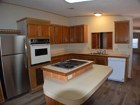 -RIVER RUN â SPIT SHINED! Lake âOâ Access! 2 Bd/ 2 Ba DWMH with Carport and storage. NEW laminate flooring throughout. Spacious Living and dining room w/ built in hutch. Bkfast bar in kitchen, cabinets have wood doors. Panoramic widows overlook the water from the party room with built in bar. 1596 Sf under air â 2294 TLA. Solid concrete seawall. This oneâs a KEEPER!
