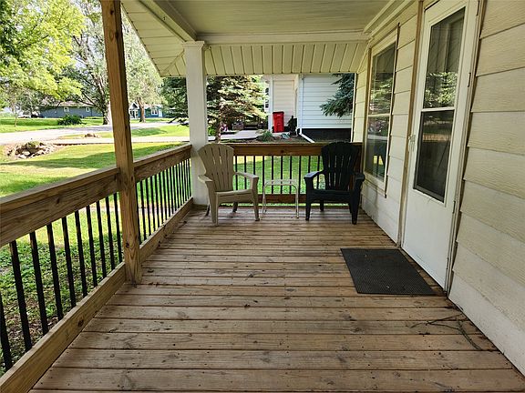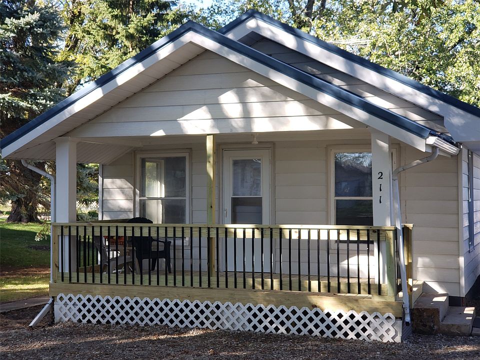 Payments cheaper than rent on one level! 2 BR - 1 full bath- new flooring, lights, paint and deck a few years ago. Mudroom with laundry area - newer water heater and furnace - breakers - metal roof and carport 24' X 36'. Great front porch and also back deck too. Lot has back access also. Has been used as a rental - easy care metal roof and siding. Come see if it works for you! Call for a showing. Being sold "as is".