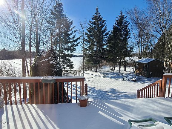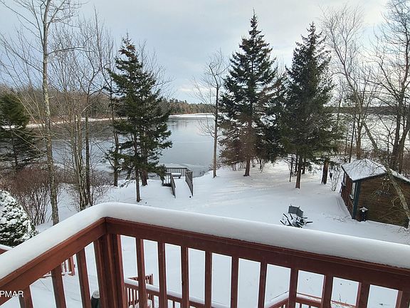 LAKEFRONT HOME! This well maintained home features direct access to the lake via two docks. Nicely landscaped with electrified shed, new jacuzzi, built in on back deck overlooking the lake. Large open design, fireplace, game room, bedroom/bath suite second level, large loft and comes complete with all furnishings. MINUTES from ALL Pocono attractions! Currently Active! Lakefront season is coming soon! Check out the crawlspace photo , it's mint!