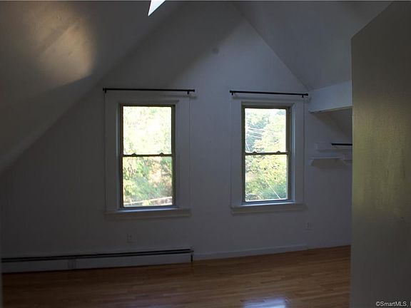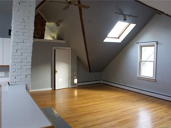 Stunning third floor, cathedral ceilings, four skylights, open living room/dining room floor plan. Kitchen with ample counter, cabinet space. Large bedroom, smaller second bedroom or den/office with french doors. Back yard. Gas heat. On street parking. Good credit and two months security. Cats ok. No dogs, sorry...