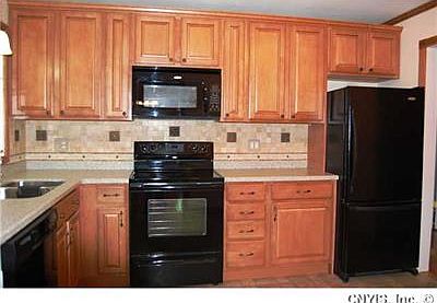 This completely updated flat ranch boasts top of the line maple kitchen, Corian counter tops, tumbled marble backsplash, all new appliances, newer roof, central air, refinished hardwoods throughout, both baths updated, new lighting, radon mitigation system in place, all new windows, new pivacy patio, freshly painted inside and out: