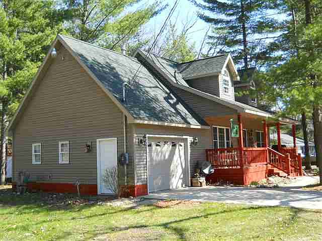 WOW! Take a look and you will fall in love! This gorgeous home offers tongue and groove cathedral ceilings, an open floor plan, beautiful oak floors throughout and all of this on a double lot! One and a half story, turn-key property also has a one car garage and loads of storage. You could spend many relaxing evenings on this inviting, long front porch. Other amenities include island kitchen; deep jet tub, adorable furnishings, a poured cement crawl and a cement driveway. 2002 Yamaha snowmobile and 2004 Bennington pontoon are negotiable items. Snowmobile trails are close by!
